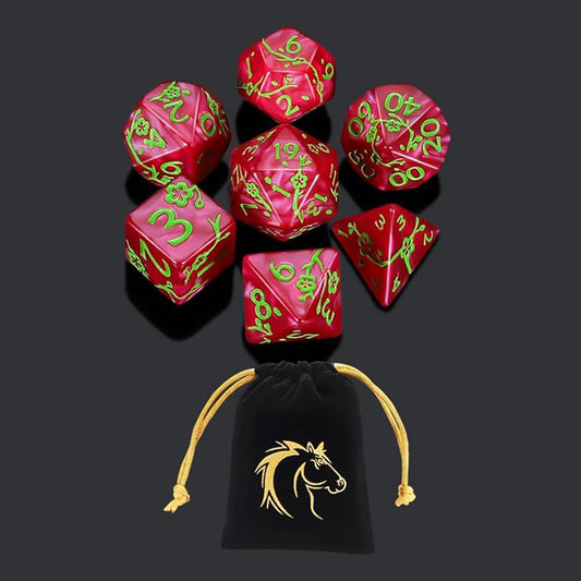 梅花雕刻花紋骰子 - 紫紅色+綠字(附骰袋 - 馬)
