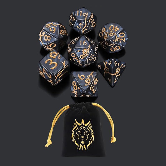 梅花雕刻花紋骰子 - 黑色(附骰袋 - 獅子)