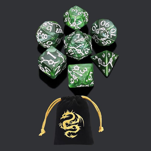 梅花雕刻花紋骰子 - 綠色(附骰袋 - 龍)
