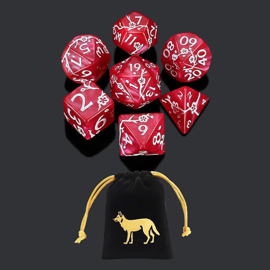 梅花雕刻花紋骰子 - 紅色(附骰袋 - 狼)