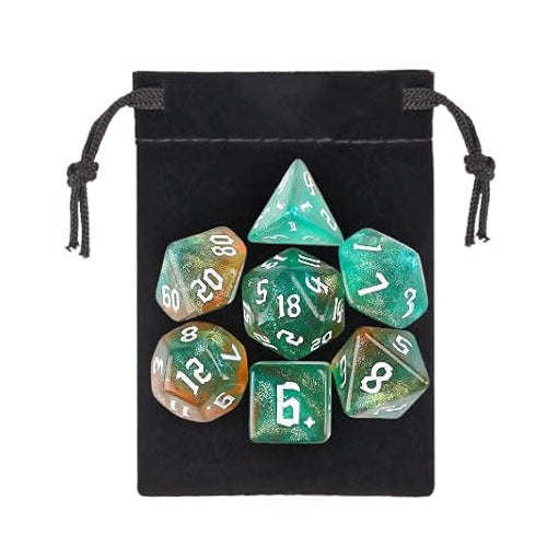 混色閃亮星光骰子 - 深綠色混橙色(附骰袋)