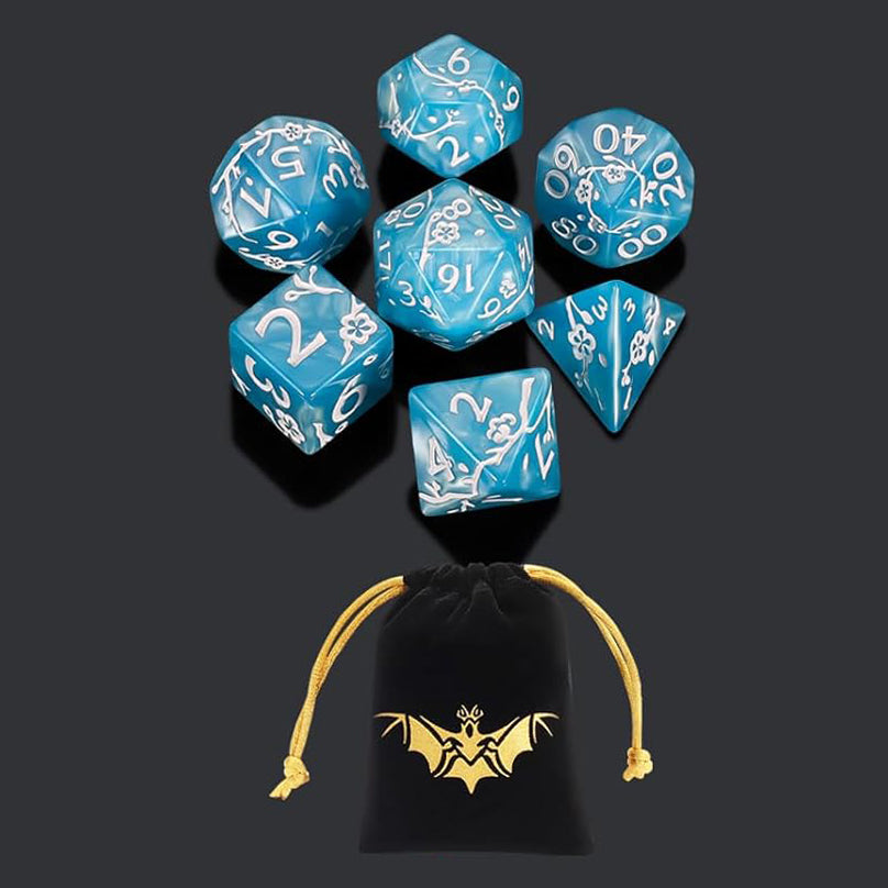 梅花雕刻花紋骰子 - 藍色(附骰袋 - 蝙蝠)